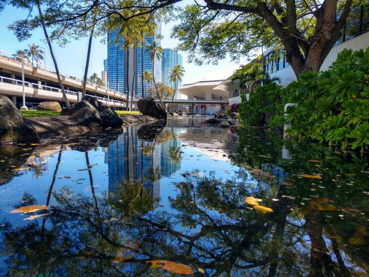 Today I returned again and tried to look at the capital city intensity from a different perspective. I can now see the beauty of the architecture, the hillsides dotted with plumeria trees and cozy homes, sharp angular lines surrounded by swaying palms and pools filled with koi. The city can be quite stunning.