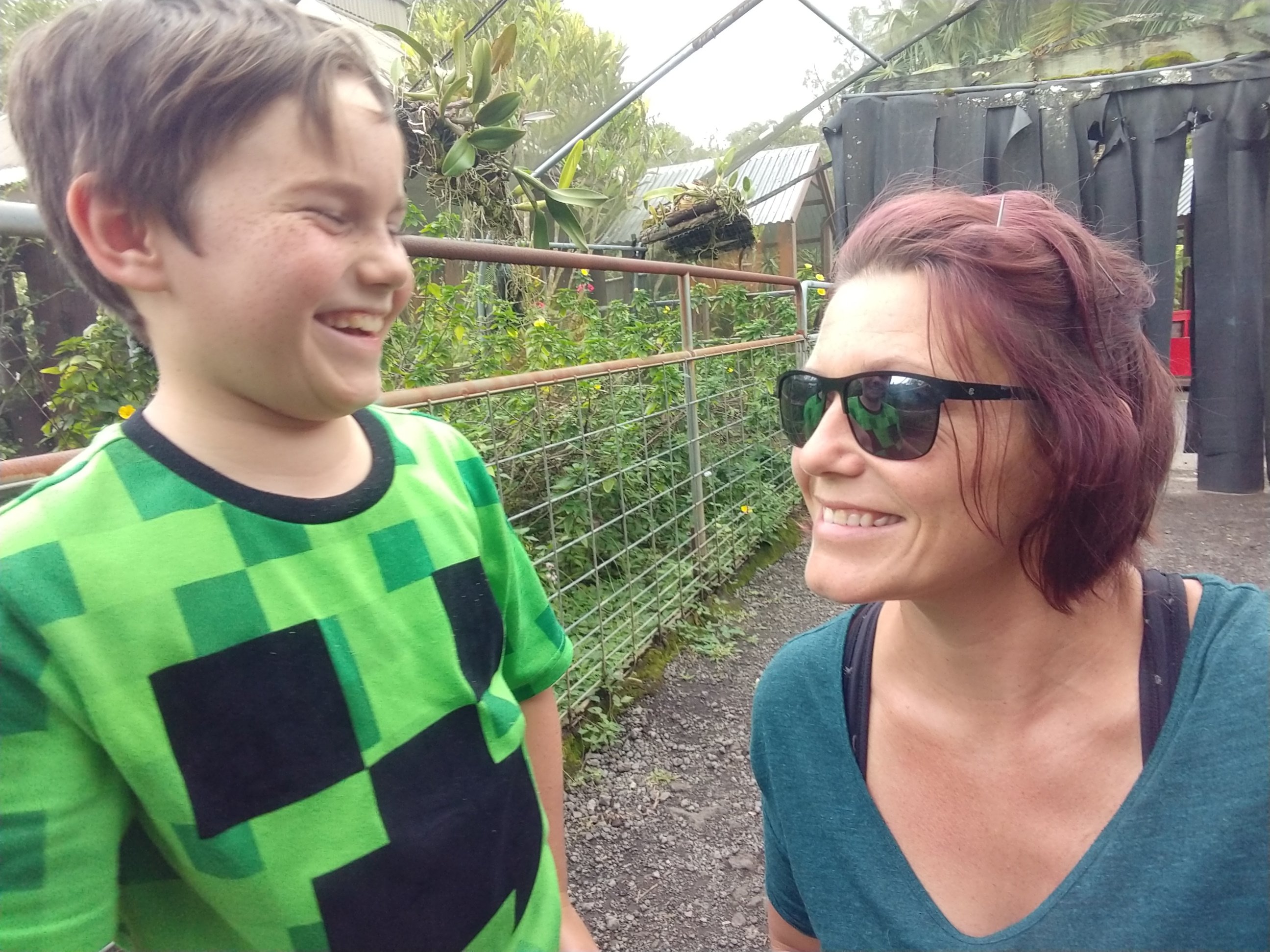 My son and I goofing off in the butterfly enclosure. Monarchs are everywhere this time of year!