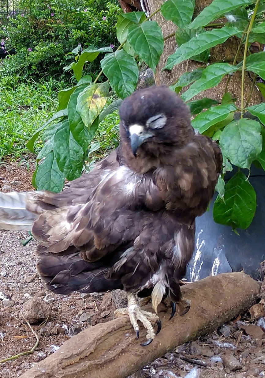The sleepy little ‘Io (ee-oh), the Hawaiian hawk, perches for a nap.