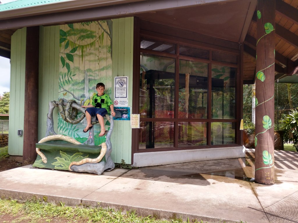 Jake the Boa Constrictor lives in this enclosure within another glass tank. Visitors can see the snake fed on Saturdays 11:00am. There are no wild snakes living in Hawaii.