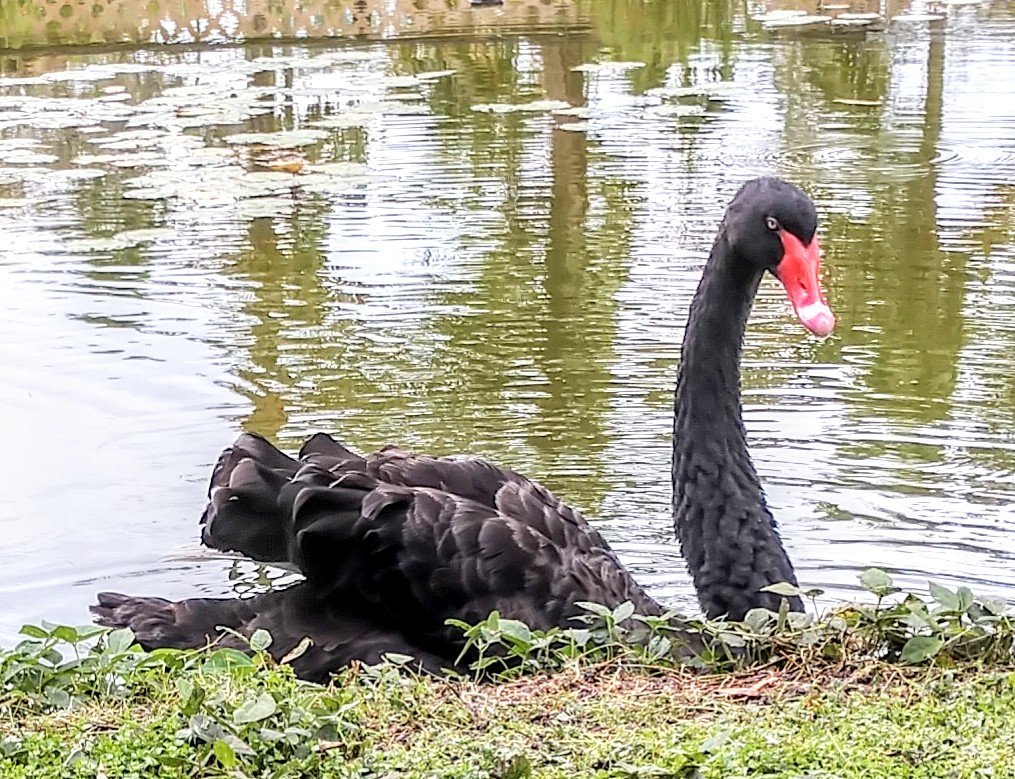 This friendly beauty, the black swan, greets visitors just inside the gate.