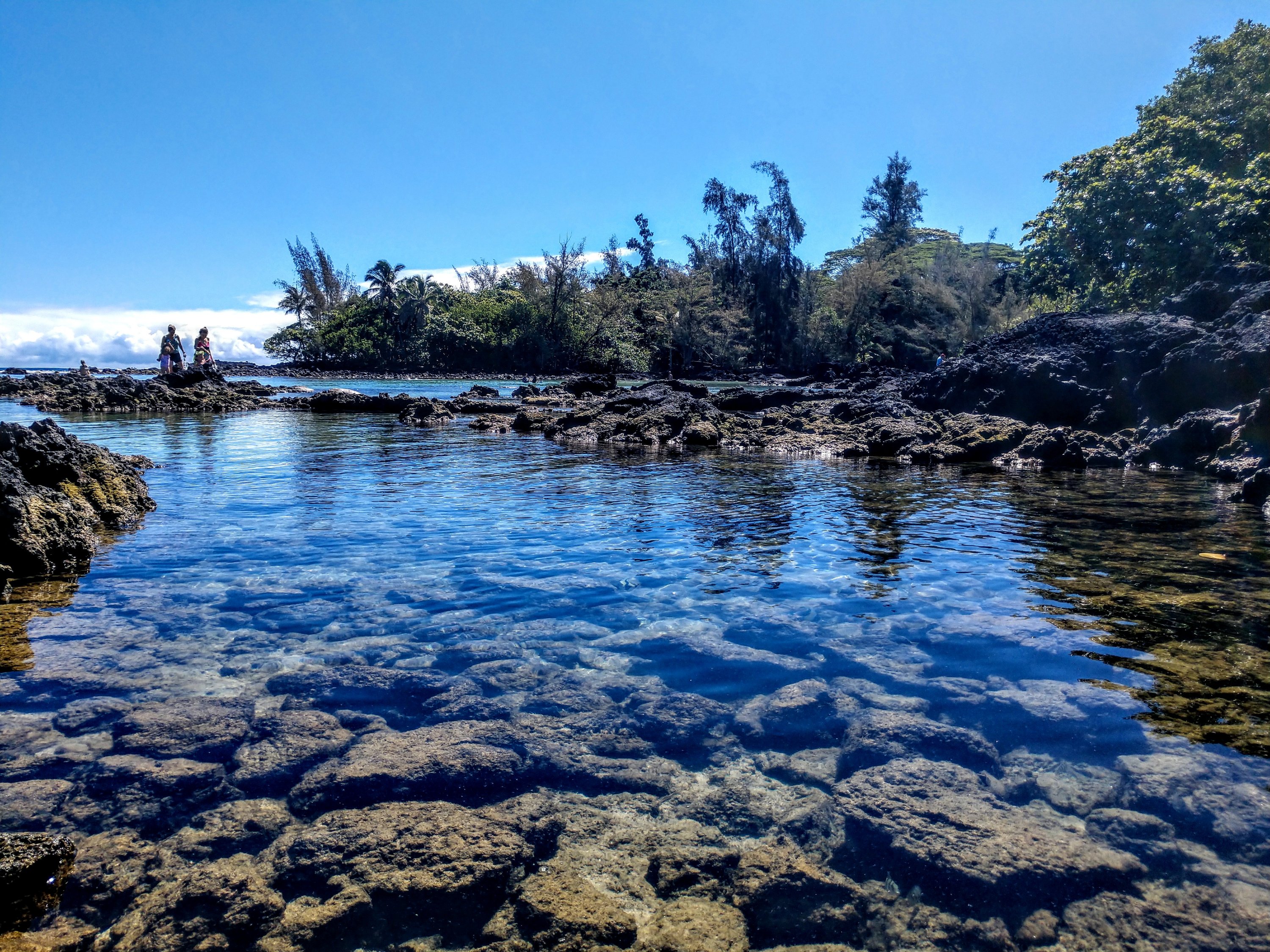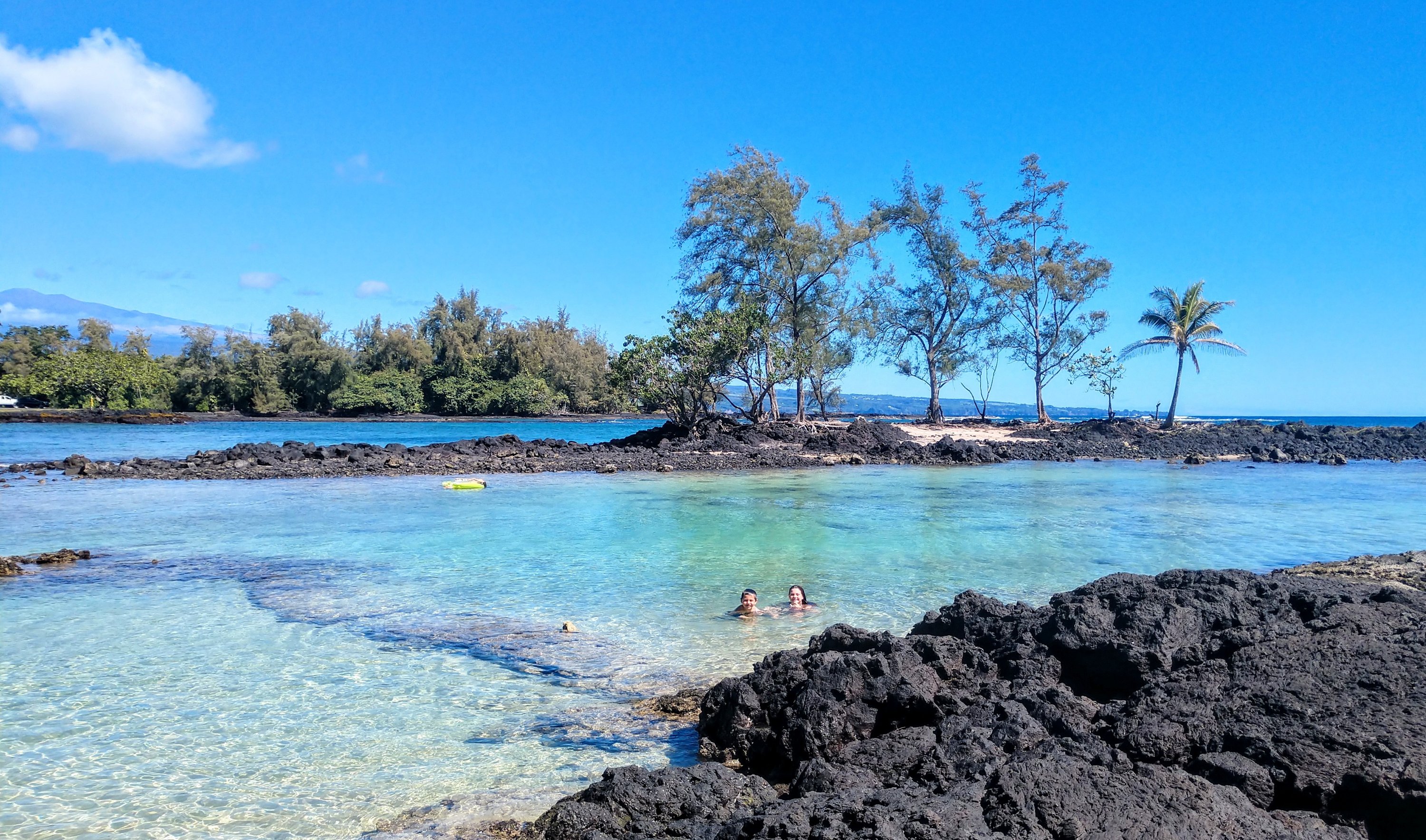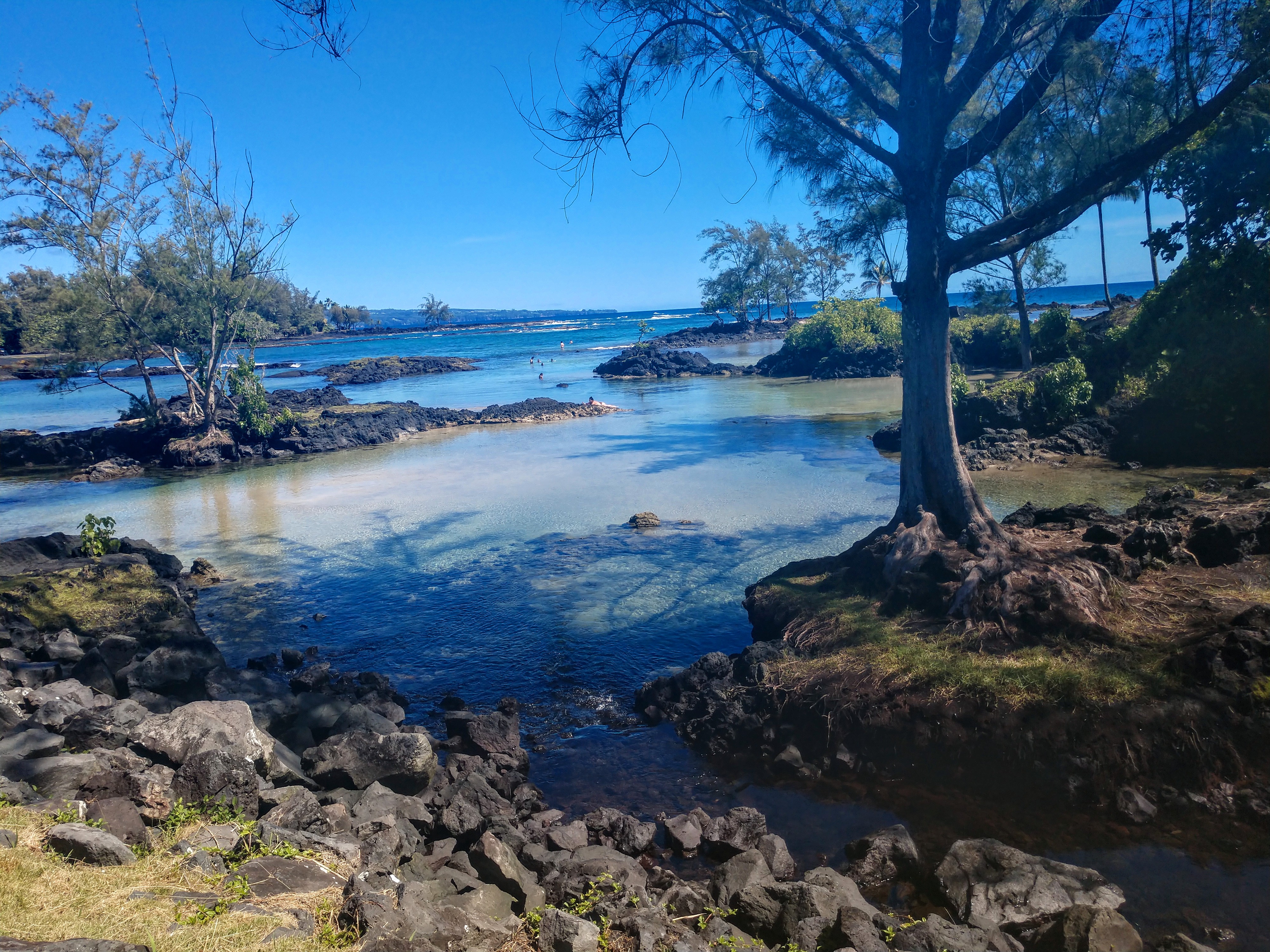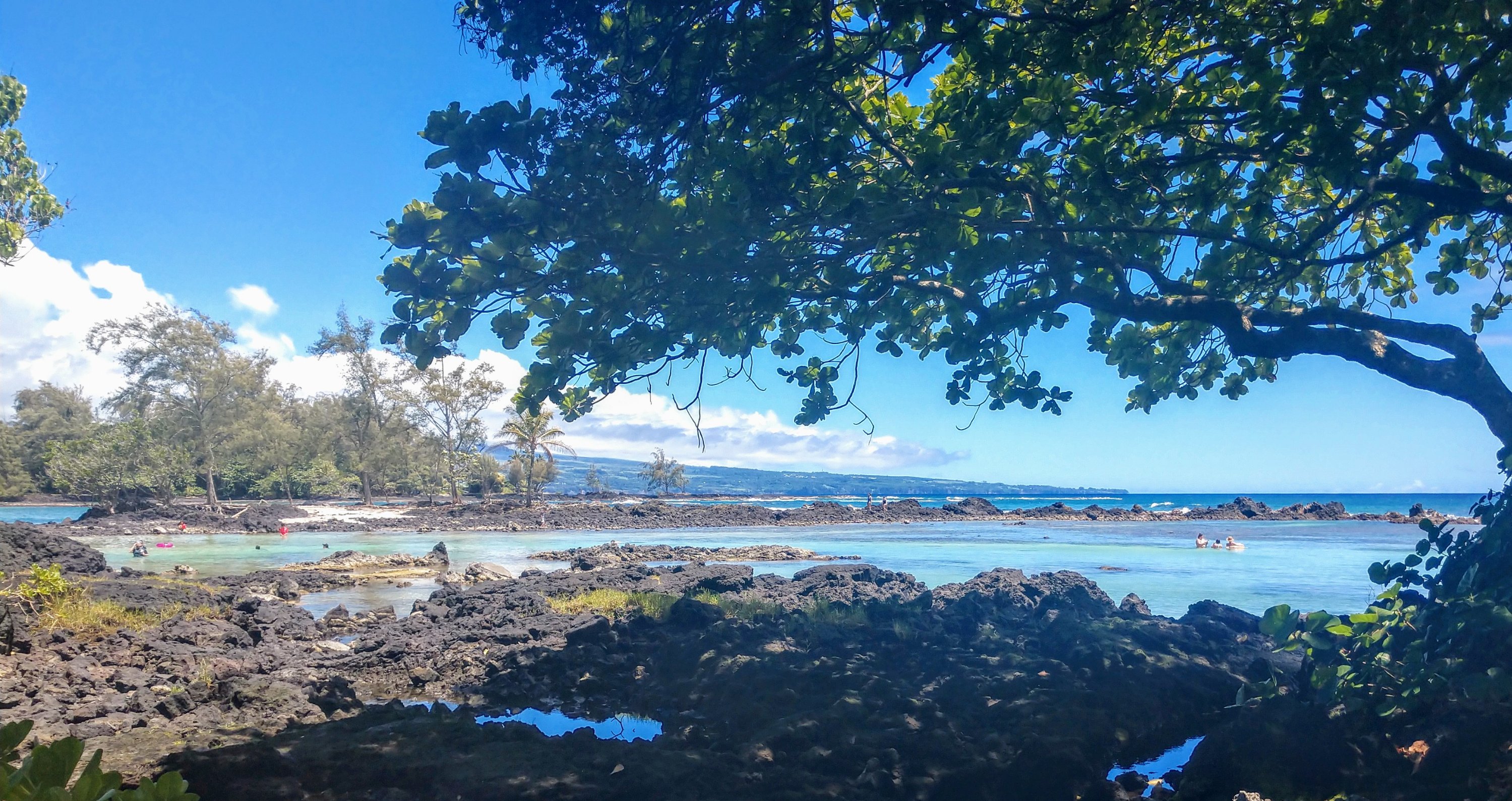 Located in Hilo, the Big Island’s largest city, is Carlsmith Beach. This beautiful cove is surrounded by lava rock creating calm pools, and is fed at one end by a river supplying cool fresh water currents and lush lagoons.