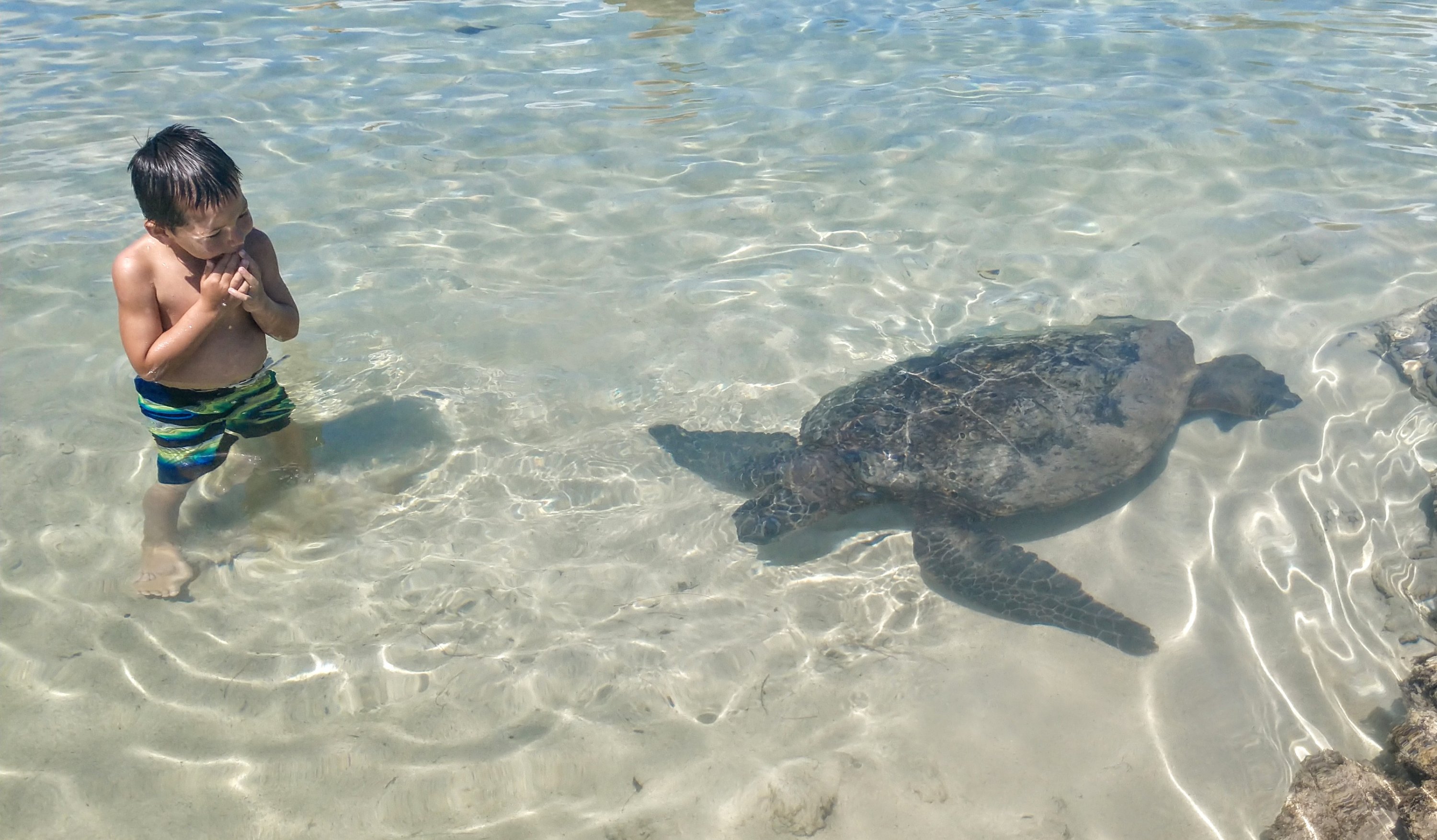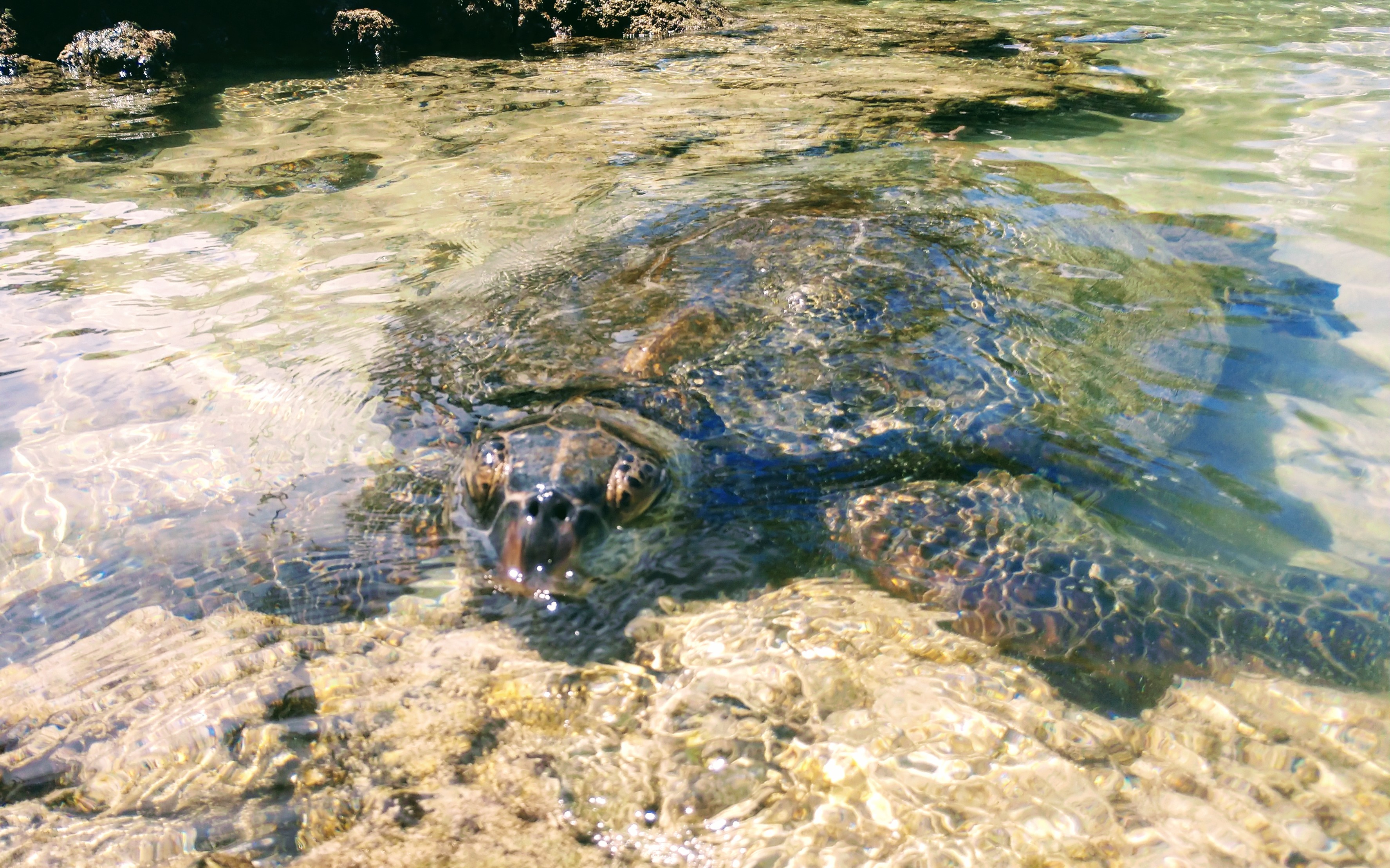 Large see turtles, or honu fearlessly frequent the pools. Coasting around on the oceans warm swells and the river’s chilly currents, these friendly giants float gracefully amongst swimmers above the sandy sea floor.