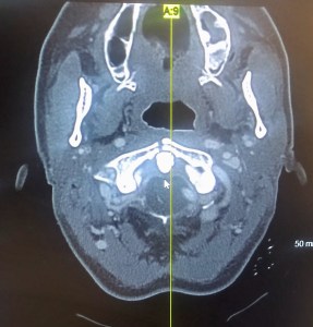 After fentanyl for the pain, a head CT, a CT angiogram to check the integrity of my carotid arteries and tons of blood work, the doctor came back to deliver the verdict in a solemn voice; there was no evidence of spinal cord damage or brain swelling but I had fractured the C1 vertabrae. As he was speaking, a smile began creeping onto my face. I then asked him, ‘are you saying I broke my neck?’ In a calm serious voice he responded, yes. To which I burst out into hysterical laughter! Of course I did! Leave it to me, it’s always got to be something – this time I stepped it up a notch! The doctor stared at me a moment, glanced at my husband, then responded, ‘I’ve never gotten that reaction before.’ A phone consult with the neurosurgeon in Oahu resulted in a discharge. By the grace of God I did not yet need surgery. I would need to wear a super spiffy neck brace for 5 weeks and return for a repeat CT. The craziest part of all? I would only need to take a week off of work! I had already taken a week vacation for my friend’s visit so I would only need to use a couple sick days, thereby leaving my sick leave stash barely touched for my pancreas transplant! (More on that another time.)